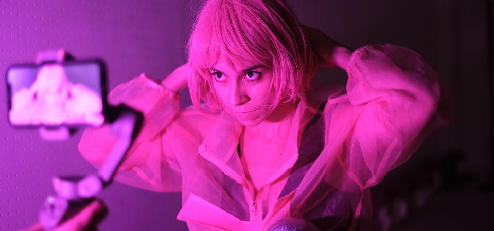 A comedic solo piece about ideals of beauty and role models with aerial artistry and dance.